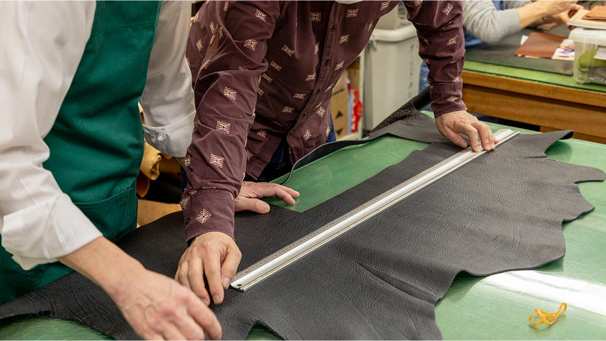 多くの教室では生徒全員が同じ製作物をつくるスタイルですが、オーソドキシーでは入門コースからご自分がつくりたいデザインを起こして、型紙づくりをふくめた製作をしていきます。 革製品の製作に必要な知識と技術を一通り経験し、全体像を俯瞰的に理解していただきます。