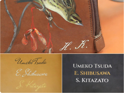 製品に名前やロゴマーク、お好みの模様などを入れることができます。当店所有の活字以外でも、オリジナル刻印をお作りできますので、自筆のサインや手描きの模様も可能です。また名前には金箔や他の色をつけることもできます。